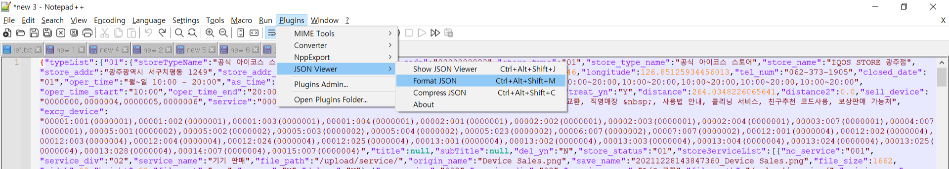 그래서 노트패드++ 플러그인 중 JSON을 보기좋게 정렬해주는 JSON 뷰어 플러그인을 소개해보려 합니다!